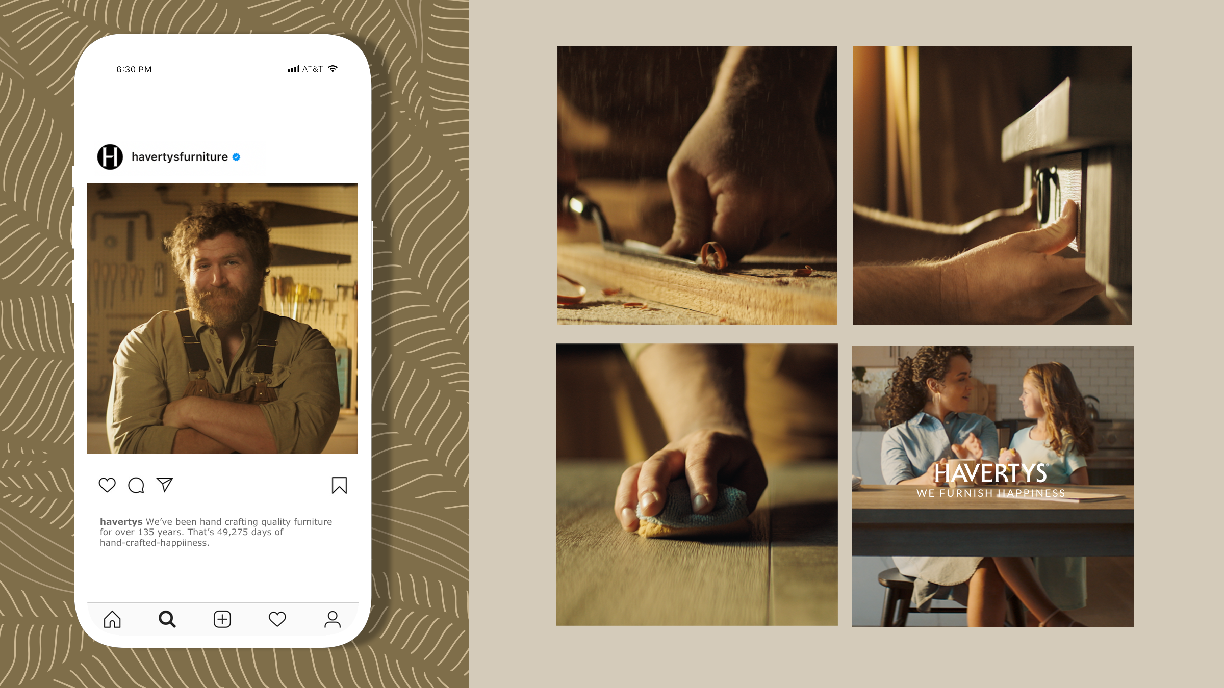 Creative Solution: Havertys has spent over 135 years making furniture. They eat, sleep, and breathe furniture. Truth be told, they’re oddly obsessed but it makes them happy and all they really want in life is to pass that happiness onto their customer. Out of this odd obsession, the “We Furnish Happiness” campaign was built, personifying Havertys with cinematic charm and a delightfully unexpected cast of characters, designed to resonate with the furniture shopper right in their feels.